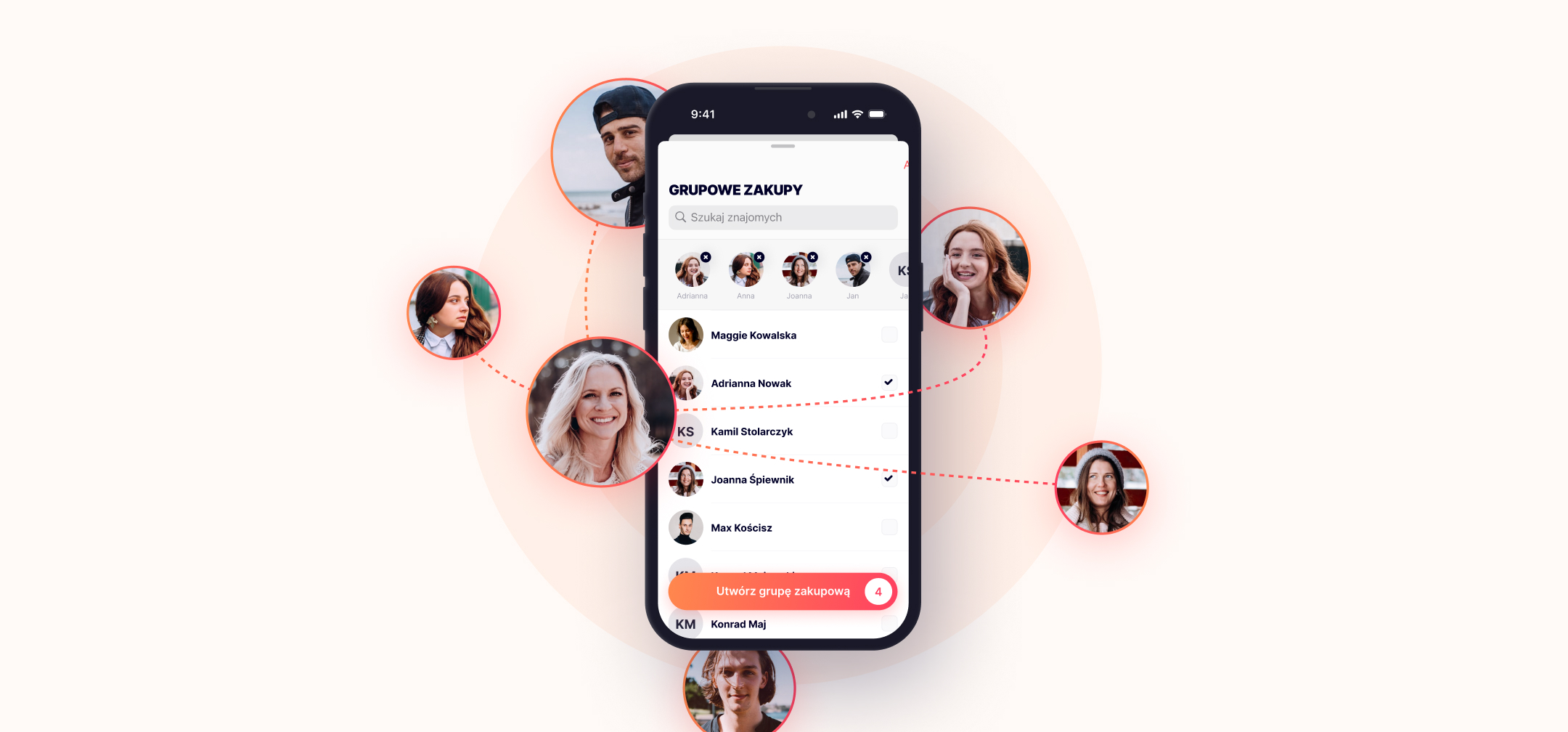 Klienci mogą łączyć się w grupy zakupowe i razem przyjść na zakupy do Twojego sklepu. Dla Ciebie to większa sprzedaż, a dla Klientów ekstra cashback.